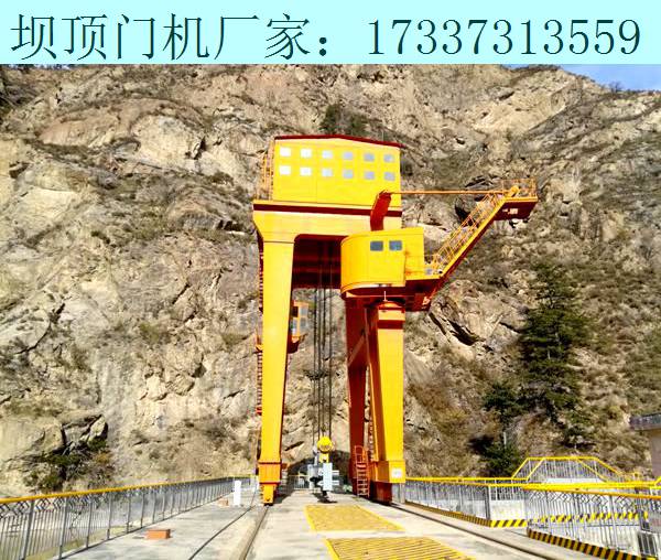 甘肅天水壩頂門機(jī)銷售廠家17337313559閘壩式水電站工程中門機(jī)軌道梁 的吊裝方法,該方法操作方便、成本低、施工現(xiàn)場適應(yīng)性強(qiáng),在使用中產(chǎn)生了顯著的社會(huì)效 益和經(jīng)濟(jì)效益。為了達(dá)到以上目的,本發(fā)明提供的閘壩式水電站工程中門機(jī)軌道梁的吊裝方法, 主要包括五個(gè)部分,即軌道梁基坑平移、固定雙吊點(diǎn)懸臂軌道式桁吊的安裝、軌道梁吊運(yùn)、 固定雙吊點(diǎn)懸臂軌道式桁吊的轉(zhuǎn)移以及下游門機(jī)軌道梁的閘墩頂平移,其中,所述軌道梁基坑平移,包括以下步驟第一步清理場地,鋪設(shè)軌道;第二步用2臺(tái)50噸千斤頂先將梁一端頂起,把軌道伸入梁下,將旱船放入梁與 軌道之間,最后將梁放在旱船上,取出千斤頂再頂另一端梁;2臺(tái)千斤頂起梁時(shí)必須保持同 步,不宜起得太高、軌道和旱船能放進(jìn)去即可;放入旱船前在軌道上表面均勻涂抹些黃油, 以減小牽引阻力;第三步在旱船和預(yù)先埋設(shè)的地錨上分別掛上10噸單輪滑車;第四步纏繞鋼絲繩,鋼絲繩一端固定在地錨上,另一端繞過動(dòng)滑輪和導(dǎo)向滑輪后 掛在挖掘機(jī)上;第五步以2臺(tái)挖掘機(jī)為動(dòng)力平移軌道梁至距閘墩根部IOcm左右處,2臺(tái)挖掘機(jī) 牽引時(shí)應(yīng)基本保持速度一致。