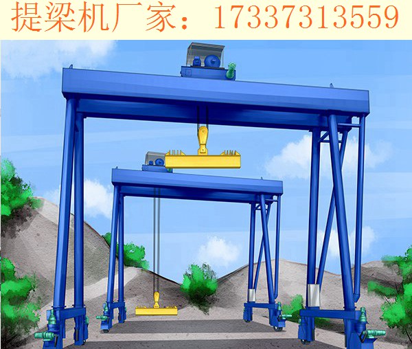廣西柳州提梁機生產廠家表示提梁起重機可以配合抬吊預制梁,也可以單臺作業,它配置支腿行走、天車行走以及天車起吊設備,能夠實現的機械化動作,作為起重設備,拆裝方便,固定牢固。