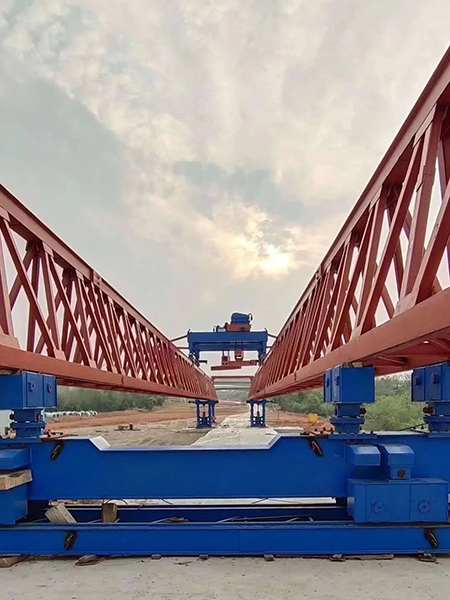在公路、鐵路軌道上行駛、用于整跨架設小跨梁的橋梁施工機械。因其架橋工效高,在中國鐵路橋梁標準設計中,多考慮以它架設為設計原則。其機身龐大,超出鐵路運輸限界,須解體運送,到達工地后,再組裝使用。